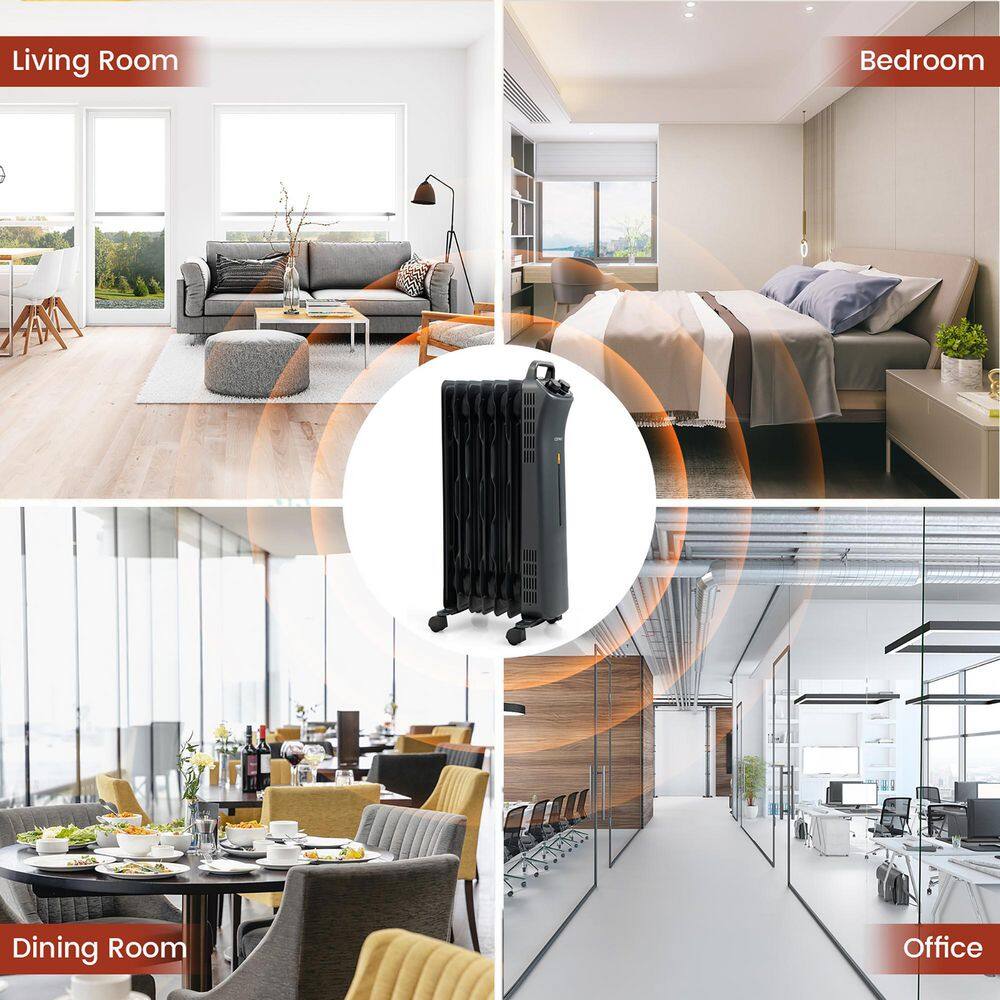 Costway 1500-Watt Electric Heater Oil Filled Space Heater with Adjustable Thermostat