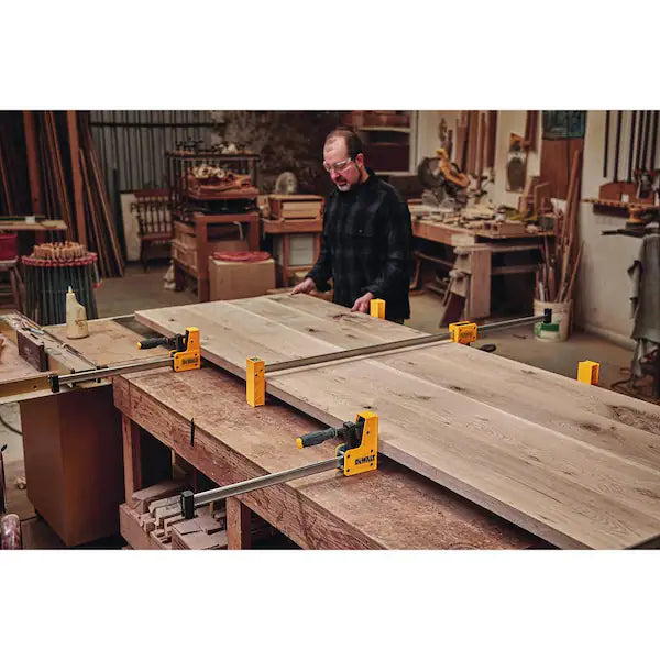 The DEWALT 48 in. Parallel Bar Clamp is built tough with the ability to clamp up to 1500 lbs. of force. It's 3-3/4 in. D throat is a great choice for a cabinet making and a variety of clamping projects. The parallel design provides consistent support and even pressure for flush surfaces.