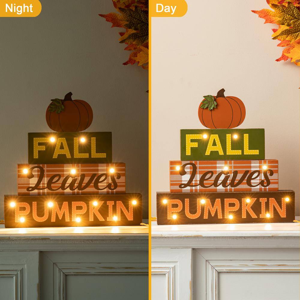 Glitzhome 12 in. H LED Lighted Fall Wooden Block Word Sign