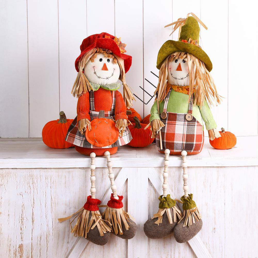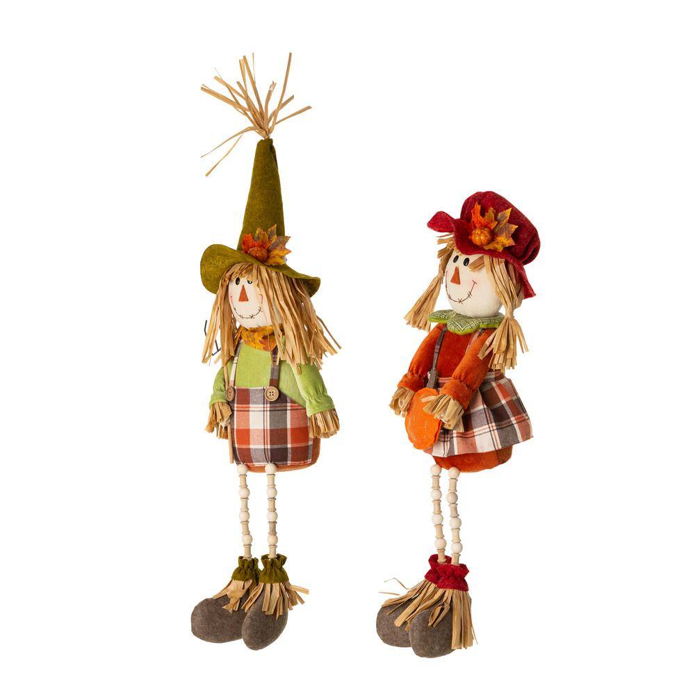 Glitzhome 25 in. H Fall Fabric Scarecrow Shelf Sitter (Set of 2)