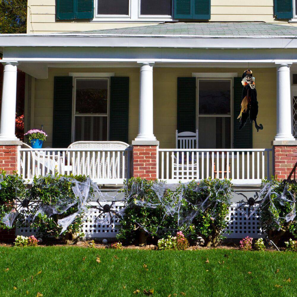 - Animatronic prop: 2.5 ft. hanging witch is perfect for your indoor or (covered) outdoor decor display your decoration in a variety of different and spooky ways at your next party