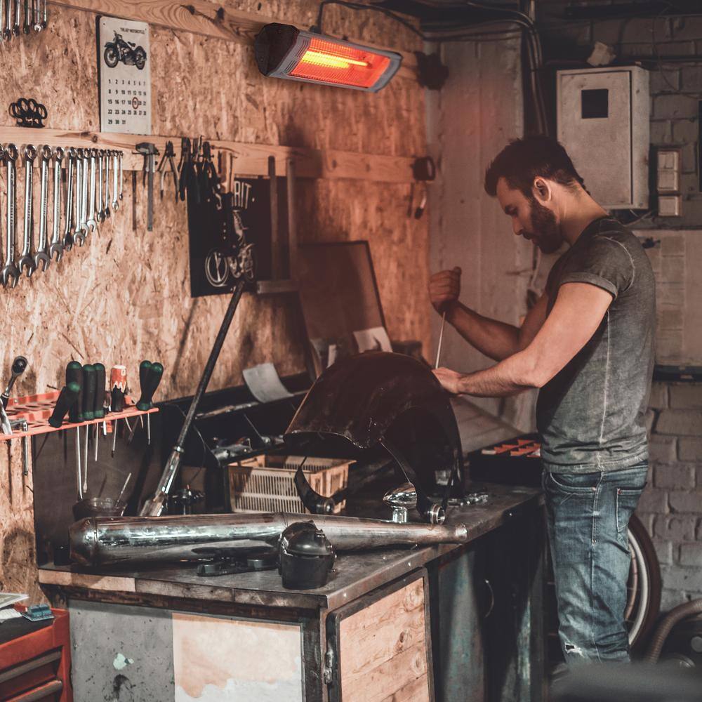 The Tradesman 1500 Outdoor Infrared Quartz heater is a 1500-Watt ceiling/wall mounted heater that provides gentle warmth for areas where floor space is at a premium and with the flexibility to install it on a wall or the ceiling. The Tradesman 1500 provides radiant heat energy, which instantly warms people and solid objects within the beam of heat. It is ideal for patios, balconies, workshop, garage, etc. It produces an output of 1500-Watt (5200 BTU) and is cULus electrically certified. Requiring no gas or other flammable fuels, the carbon fiber heating element heats very efficiently. Its features include 1500-Watt of gentle, radiant heat, an anodized extruded aluminum alloy frame, an aluminum reflector that evenly concentrates heat outward, a mounting bracket that tilts 30° forwards and backward to angle unit as needed and a 6 ft. power cord. Uses a standard 120-Volt wall outlet. It is protected against rain and dust (IP35 certified).