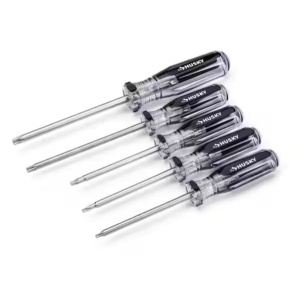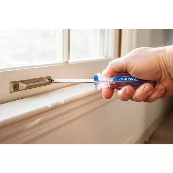 The Husky 37-Piece Screwdriver Set features an impact- and chemical-resistant acetate handle. The forged steel blade is chrome plated for added corrosion resistance. The slotted tips are serrated which provides increased grip and reduces slipping to better avoid fastener rounding. The Phillips tips are precision formed to fit the fastener each and every time.