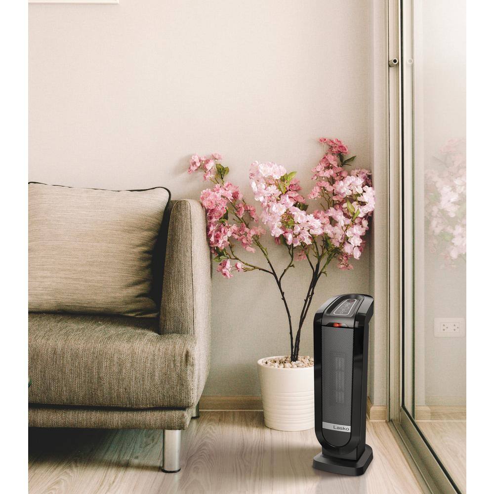Lasko 1500W 22 in. Black Electric Tower Oscillating Ceramic Space Heater with Digital Display, Timer and Remote Control