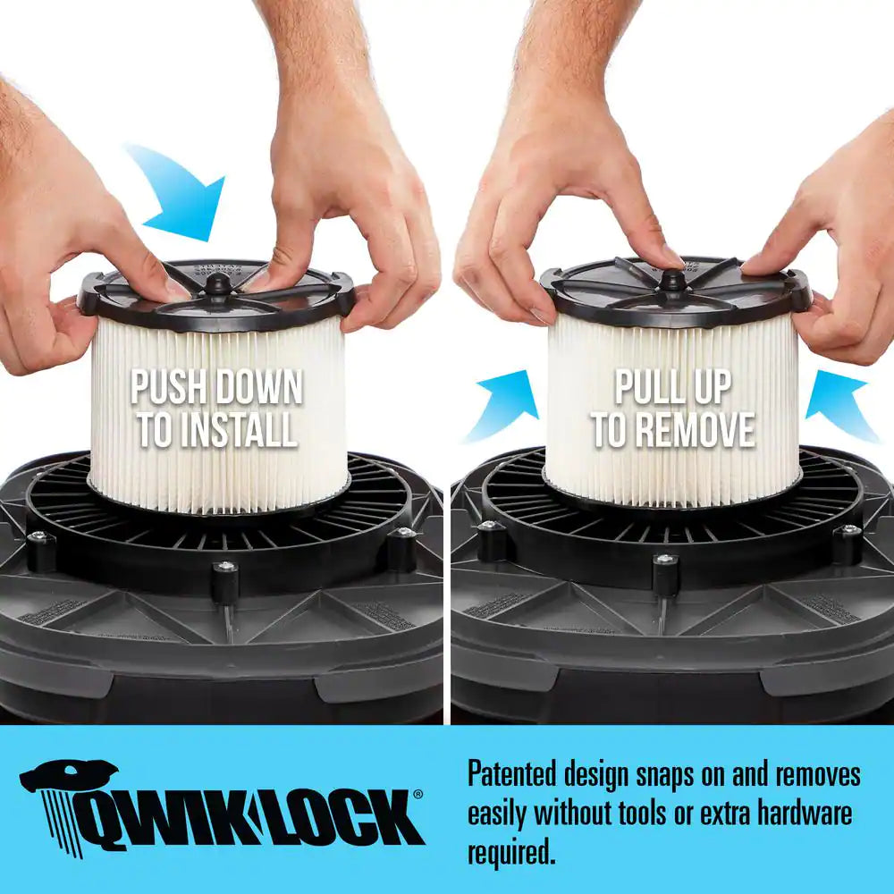 - Patented Qwik Lock filter makes installing or removing your shop vac filter quick, easy, and secure - no tools or hardware needed