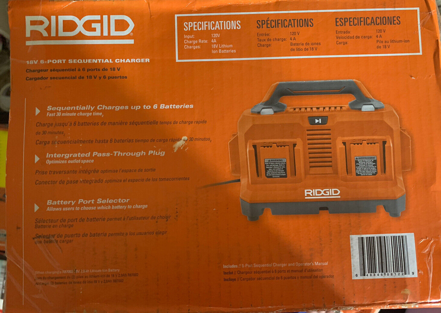 - Charges up to 6 RIDGID 18V Batteries one at a time